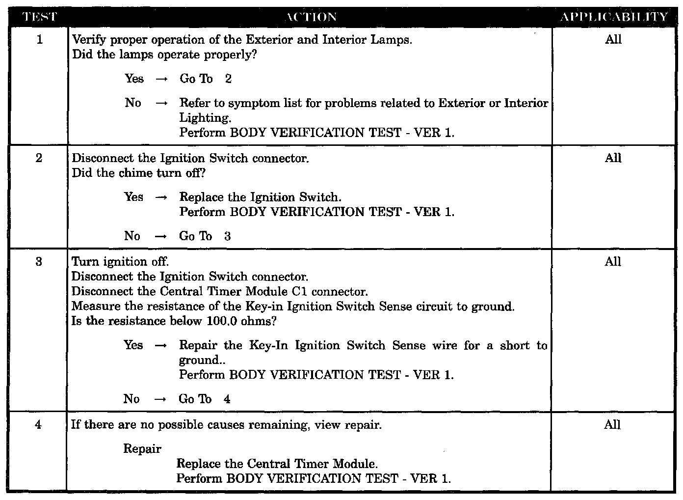 CHIME SOUNDS WITH DRIVER'S DOOR OPEN, KEY REMOVED