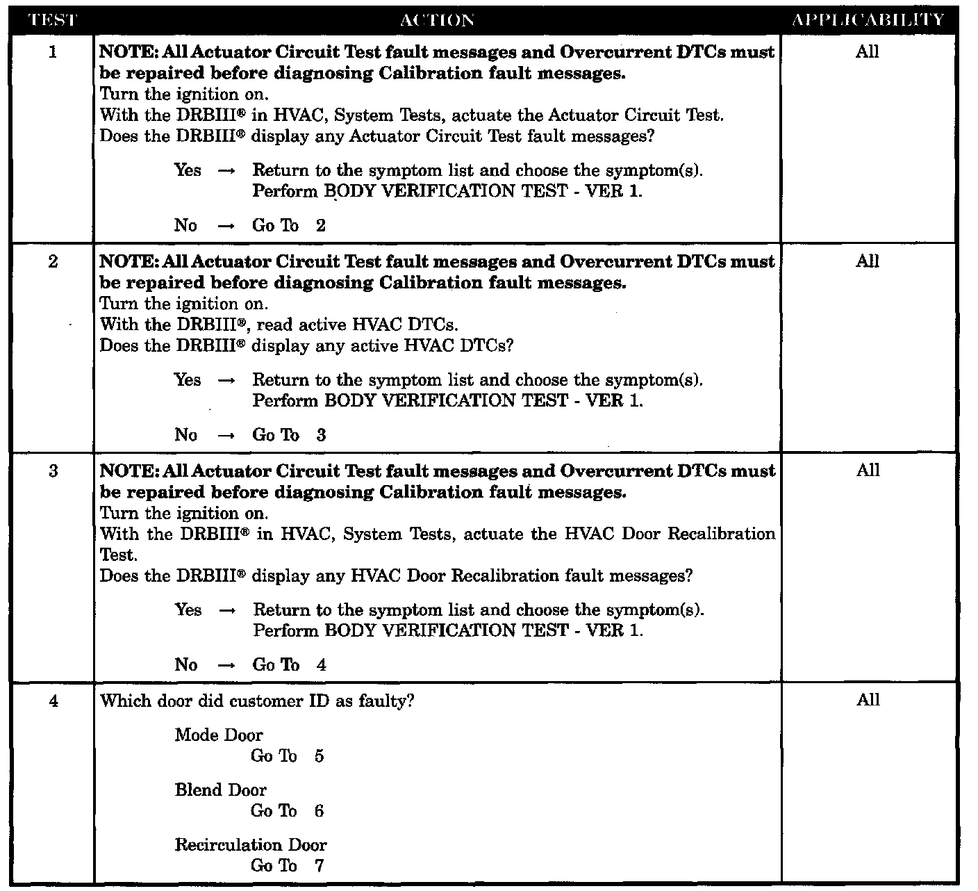 - Check for HVAC door recalibration fault messages