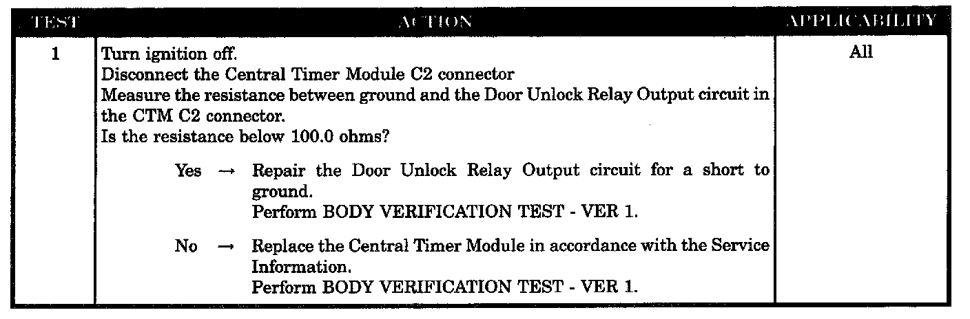 Central timer module - door unlock inoperative