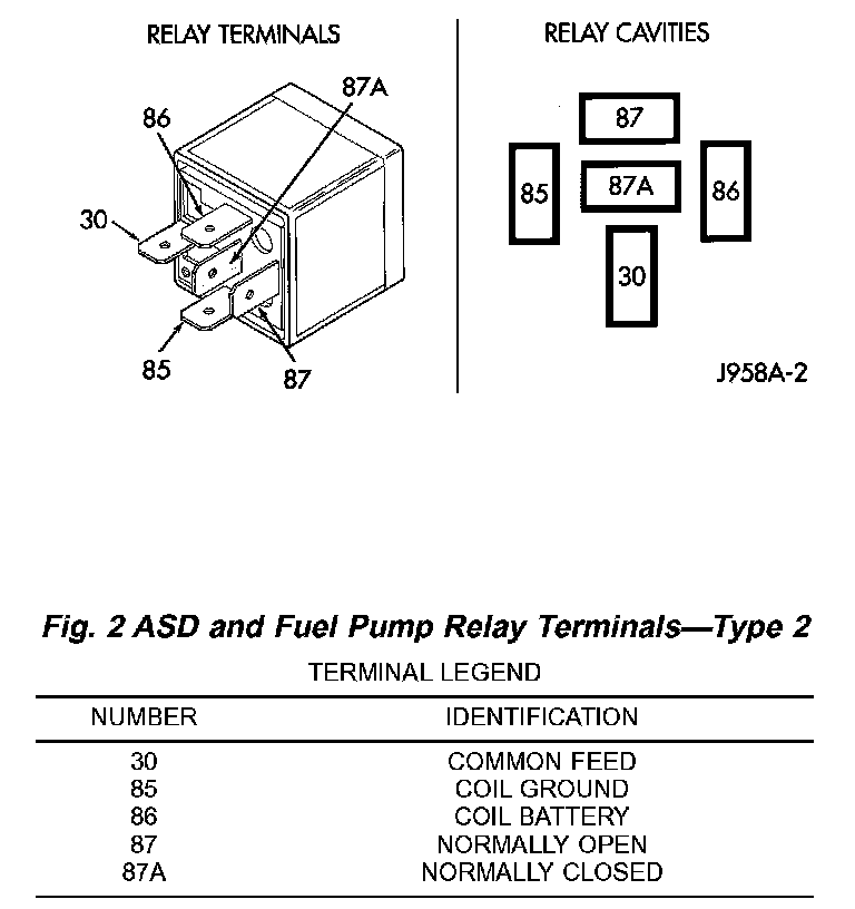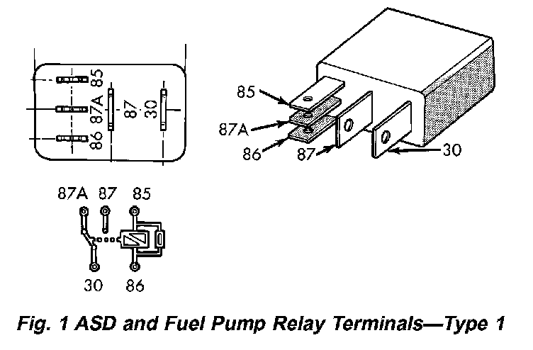 Fig.1 ASD And Fuel Pump Relay Terminals - Type 1: