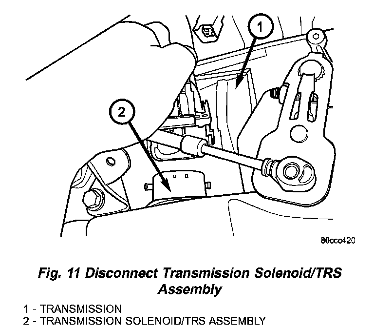 14. Disengage the transmission solenoid/TRS assembly connector from the transmission solenoid/ TRS assembly (Fig. 11).