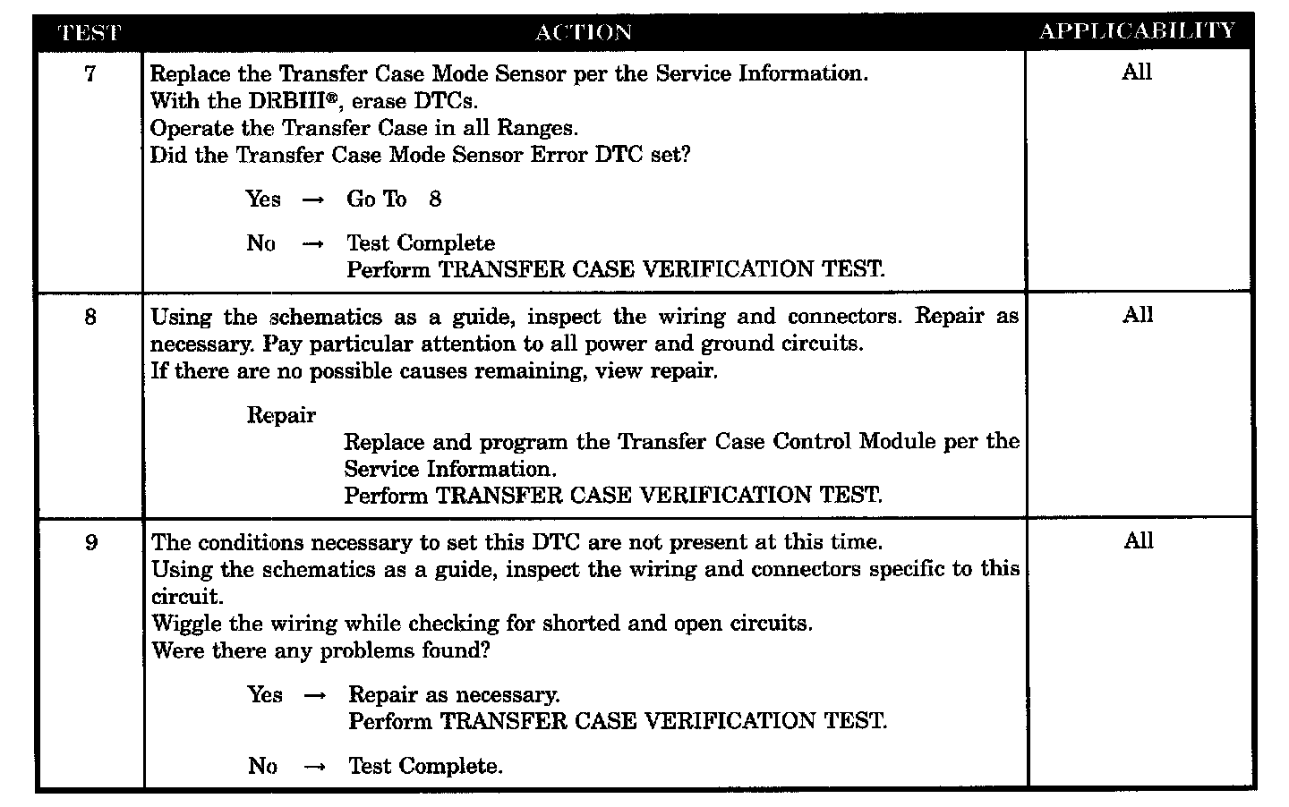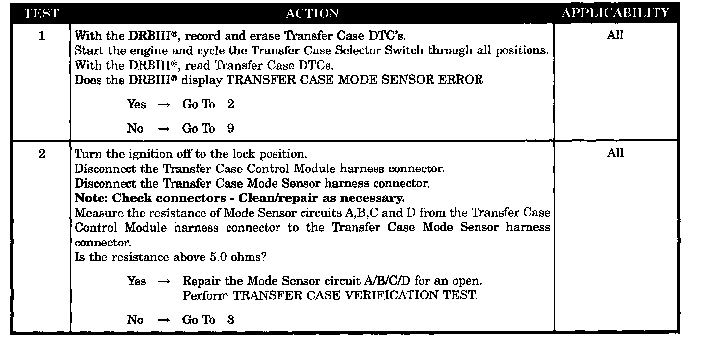 1. The Mode Sensor has an incorrect transition during a shift, then attempts and fails two times and defaults to a 4WD HI position.