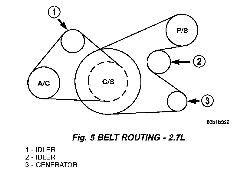 8. Install the NEW belt by rotating the tensioner counterclockwise until the NEW belt can be installed on pulleys. See (Fig. 5) for belt routing.