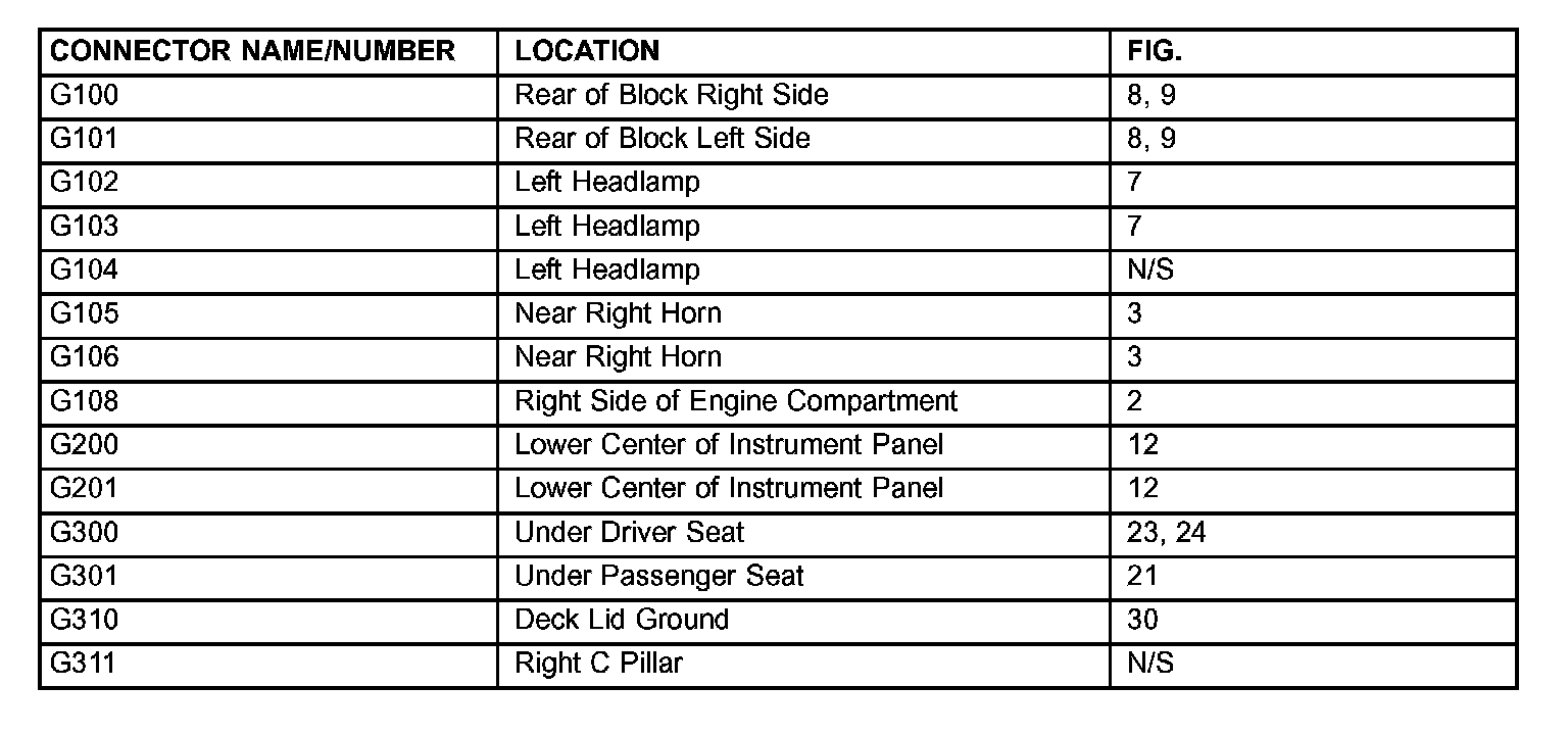 The abbreviation N/S means Not Shown in the illustrations.