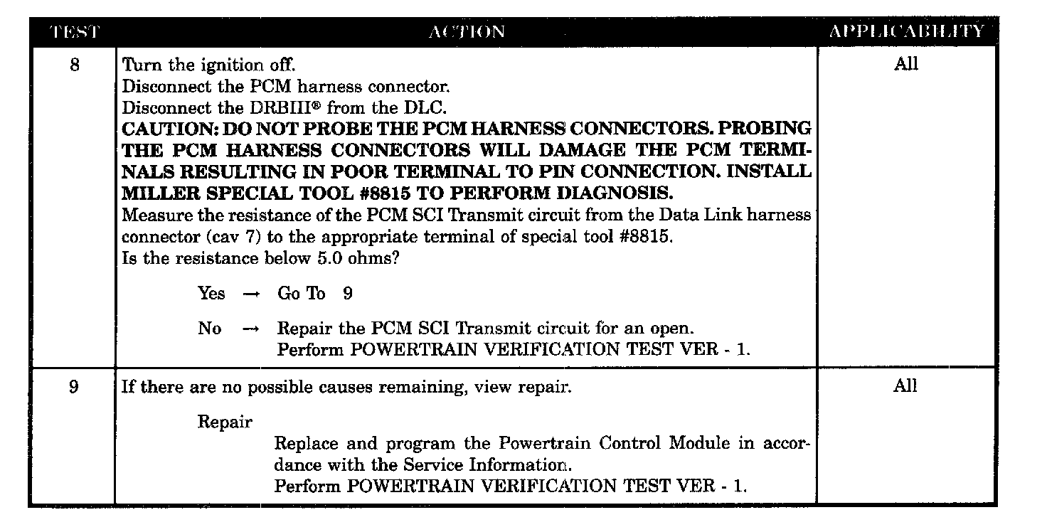 NO RESPONSE FROM PCM (PCM SCI ONLY) - NGC