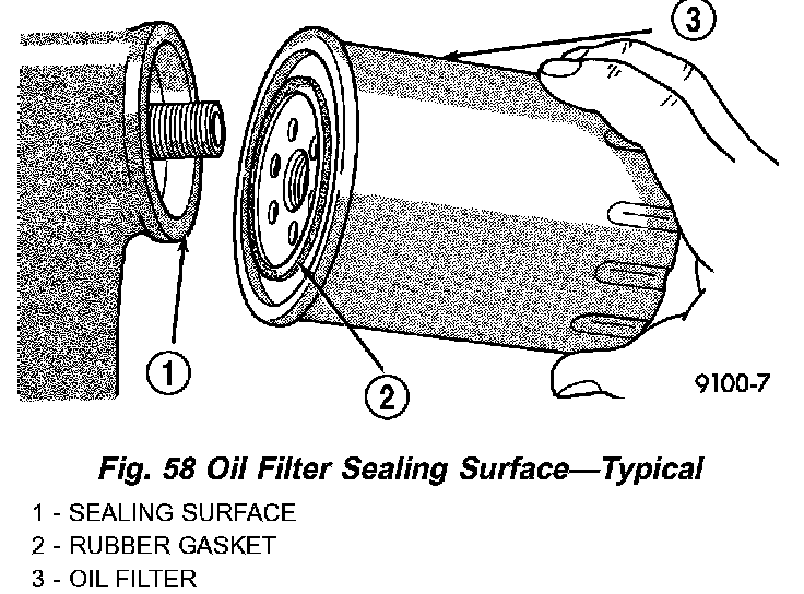 2. Thread filter onto adapter nipple. When gasket makes contact with sealing surface, (Fig. 58) hand tighten filter one full turn, do not over tighten.