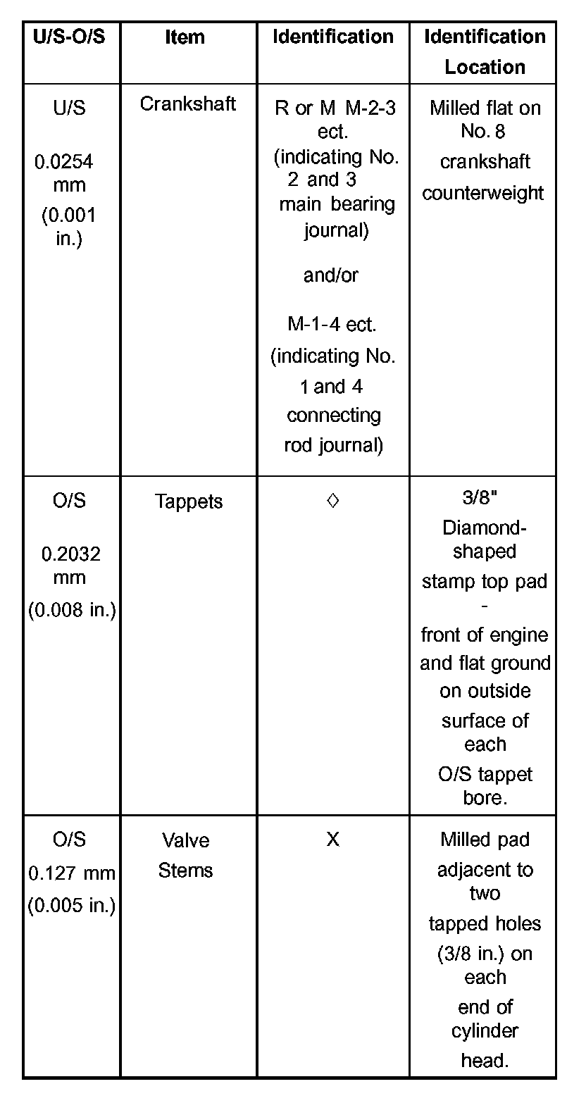 Oversize and Undersize Engine Component Marking Chart