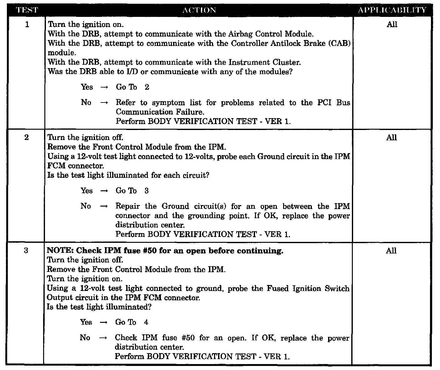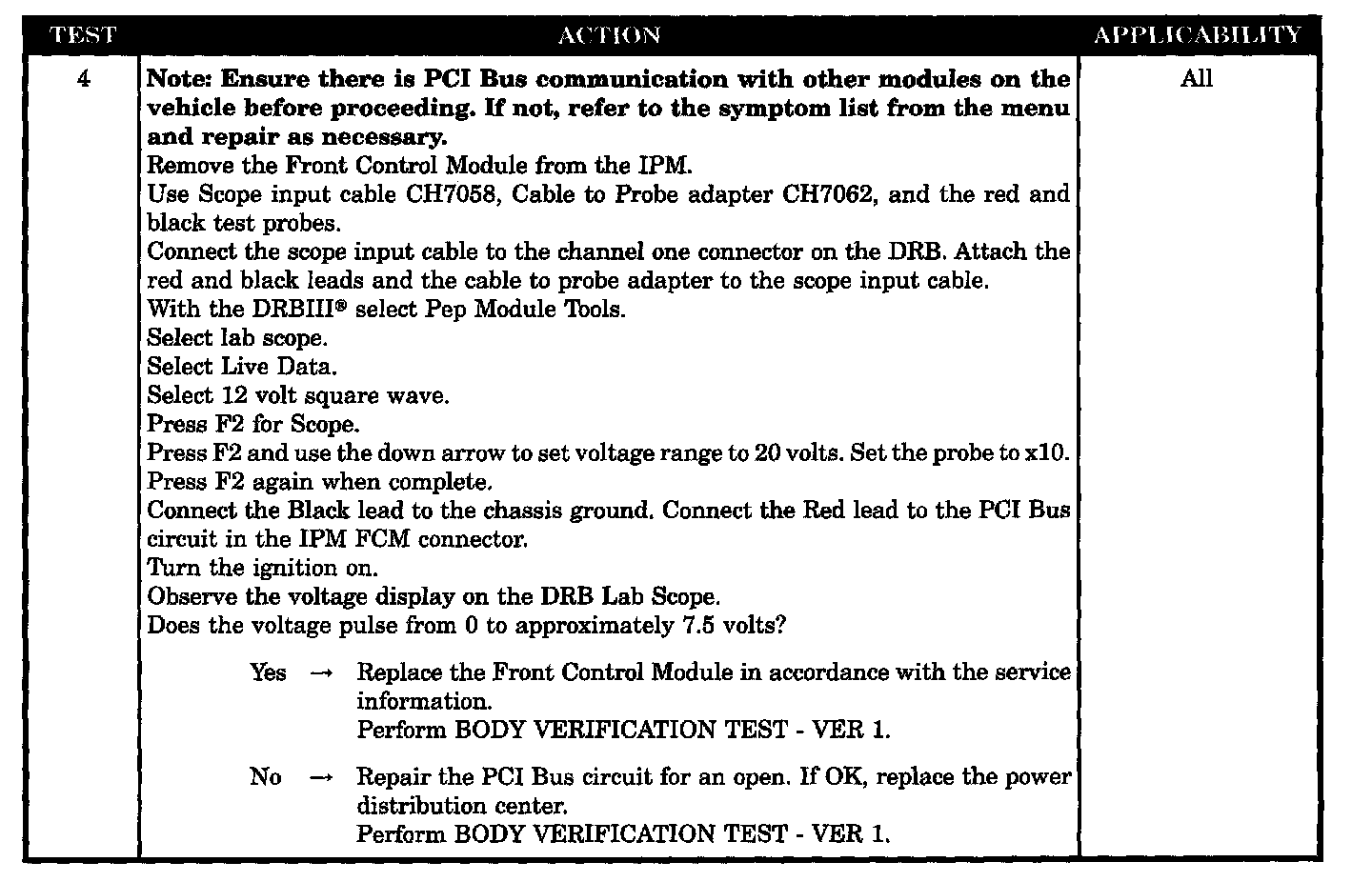 NO RESPONSE FROM FRONT CONTROL MODULE