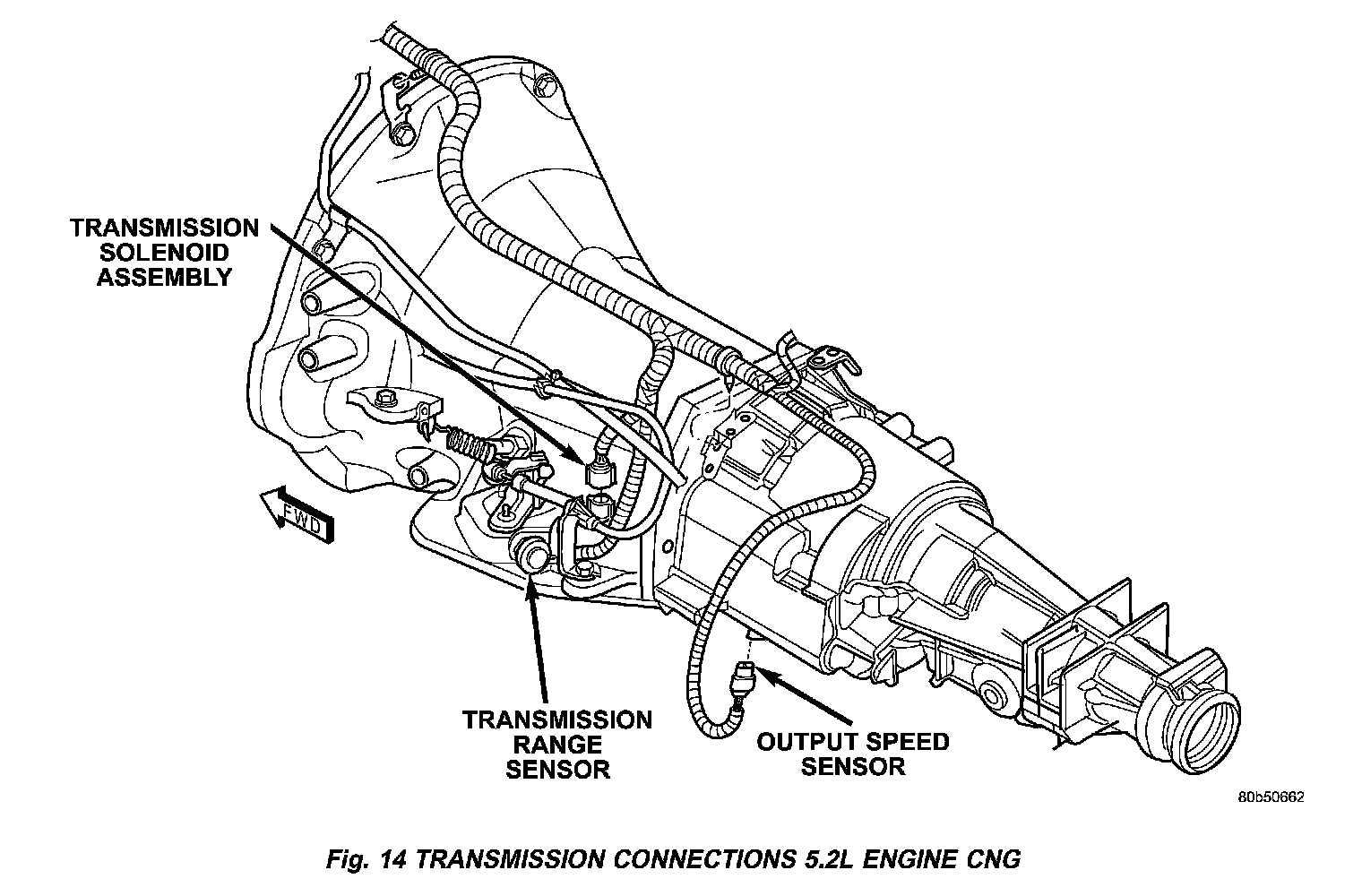 Fig. 14 Transmission Connections 5.2L Engine CNG: