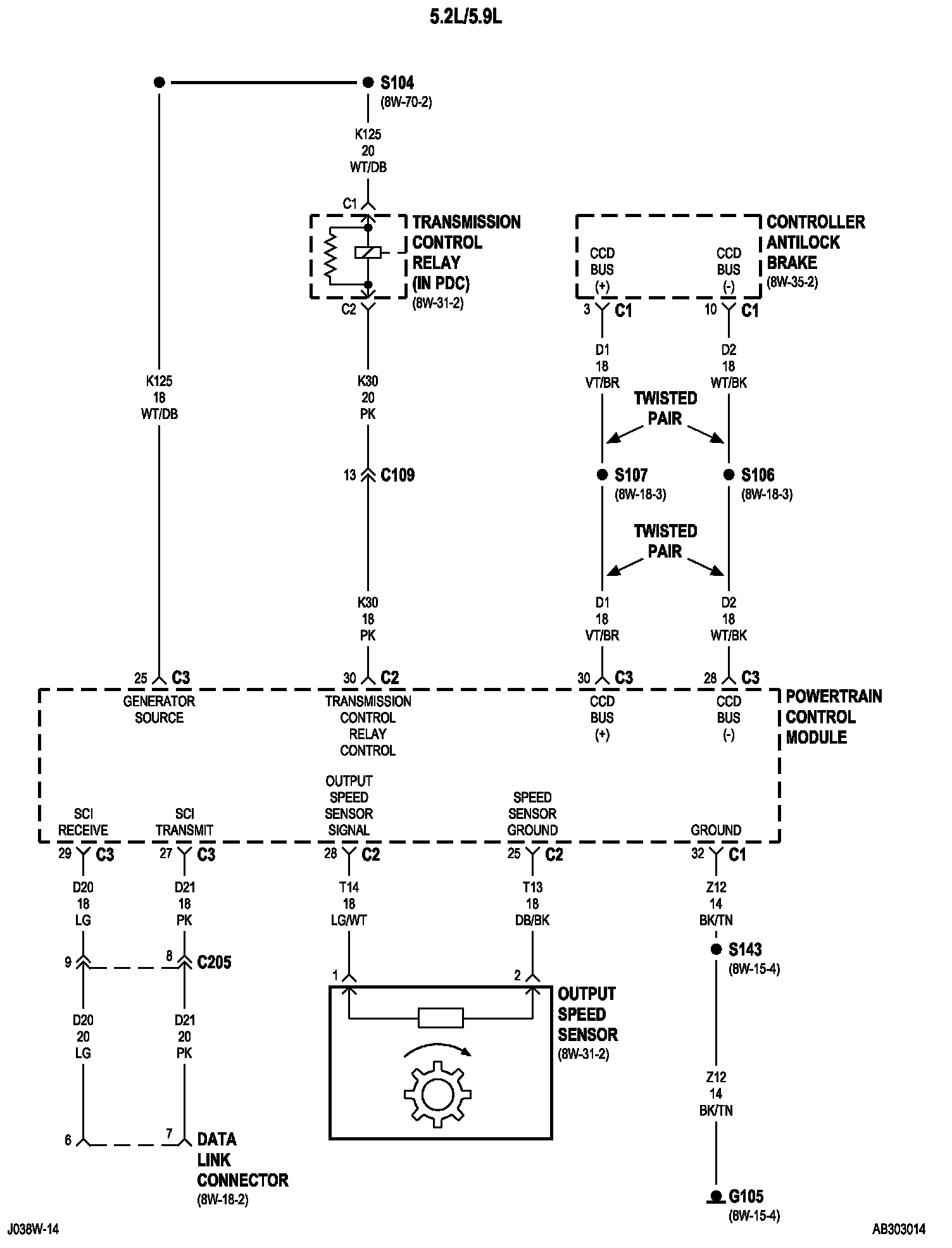 PLEASE NOTE: Some diagram sheets may appear to be missing because of gaps in the number sequences. These "gaps" are actually for diagrams that do not apply to the vehicle model selected.8w-30-14 (5.2L/5.9L):