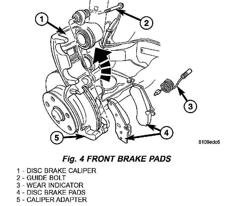 1. Install the brake pads (Fig. 4).