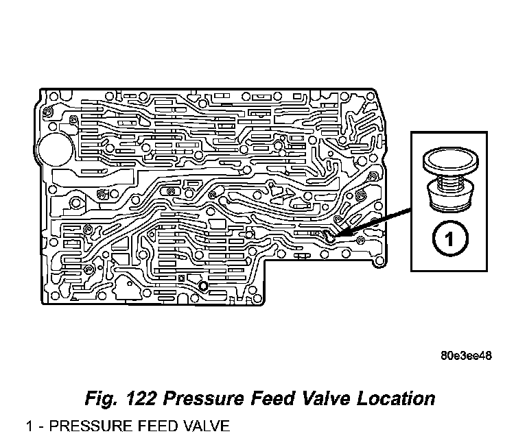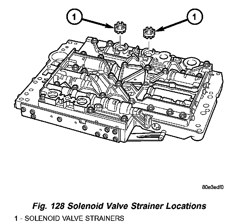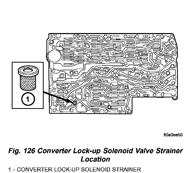 6. Install the strainer (1) (Fig. 126) in the inlet to torque converter lock-up control solenoid valve.