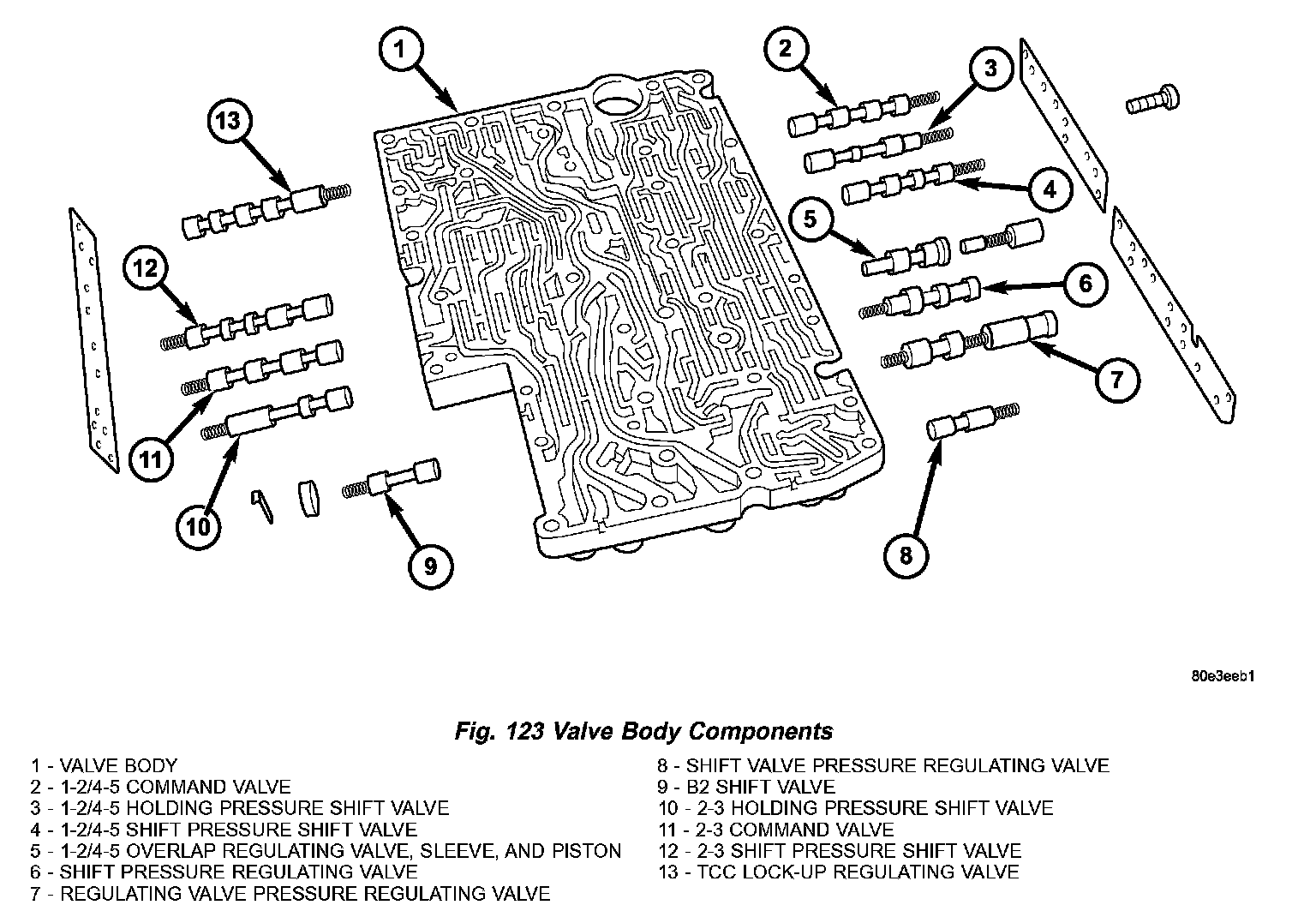 2. Install all valves and springs from the valve body (1) (Fig. 123). Check all valves for ease of movement and shavings.