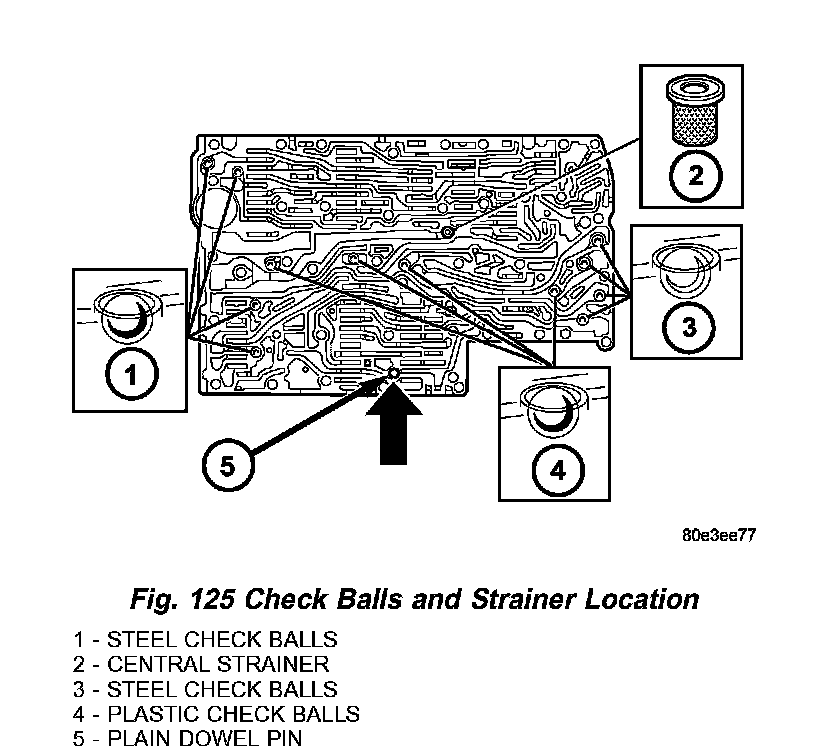 5. Install all check balls (1, 3, 4) (Fig. 125) and the central strainer (2).