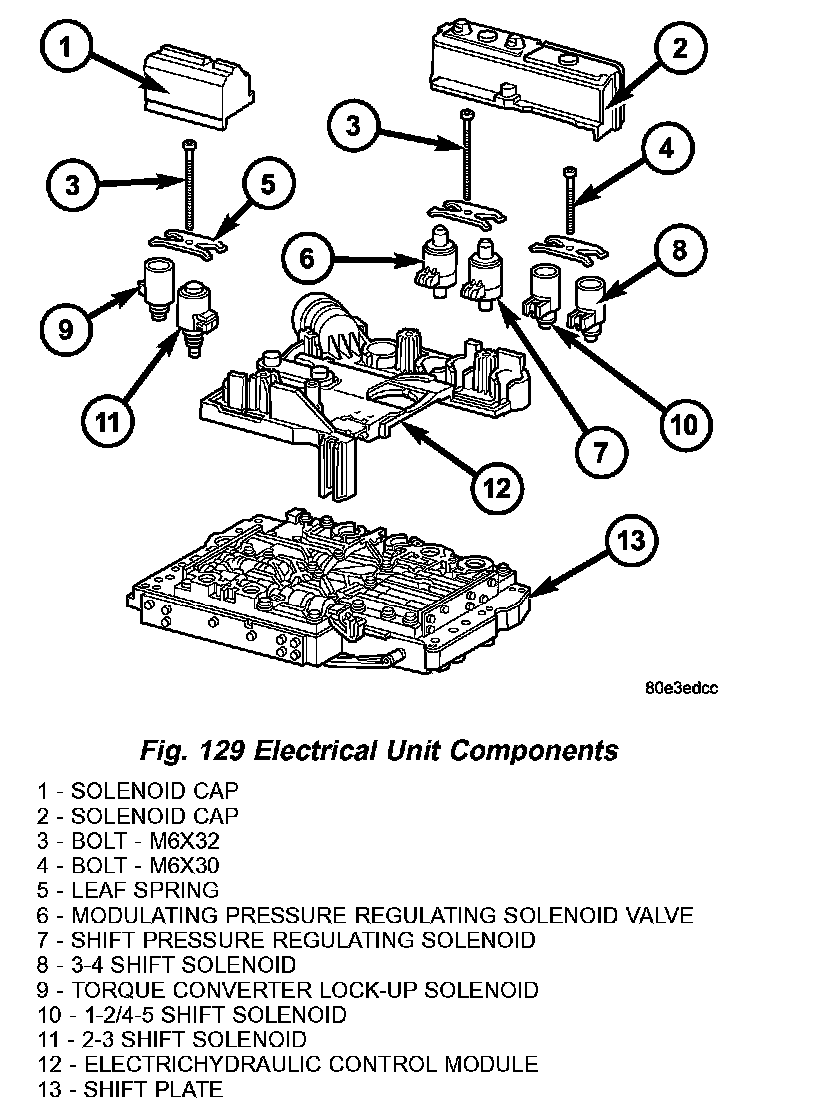 12. Install the electrohydraulic control module (12) onto the shift plate (13) (Fig. 129).