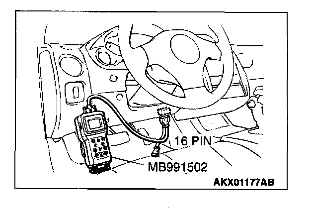 To prevent damage to scan tool MB991502, always turn the ignition switch to the "LOCK" (OFF) position before connecting or disconnecting scan tool MB991502.