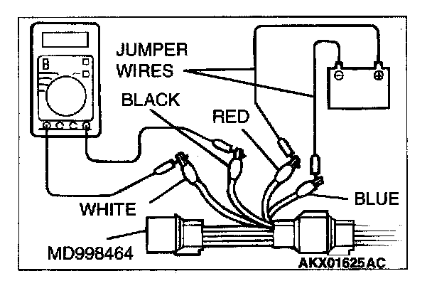 1. Disconnect the heated oxygen sensor connector and connect special tool MD998464 to the connector on the heated oxygen sensor side.
