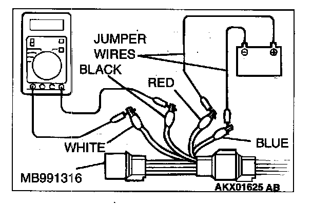 1. Use scan tool MB991502, observe HO2S reading. If values are unsatisfactory, or if the scan tool is not available, use the following procedure:
