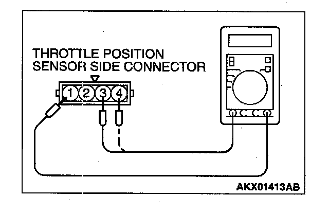 3. Measure the resistance between throttle position sensor side connector terminals 1 and terminal 3.
