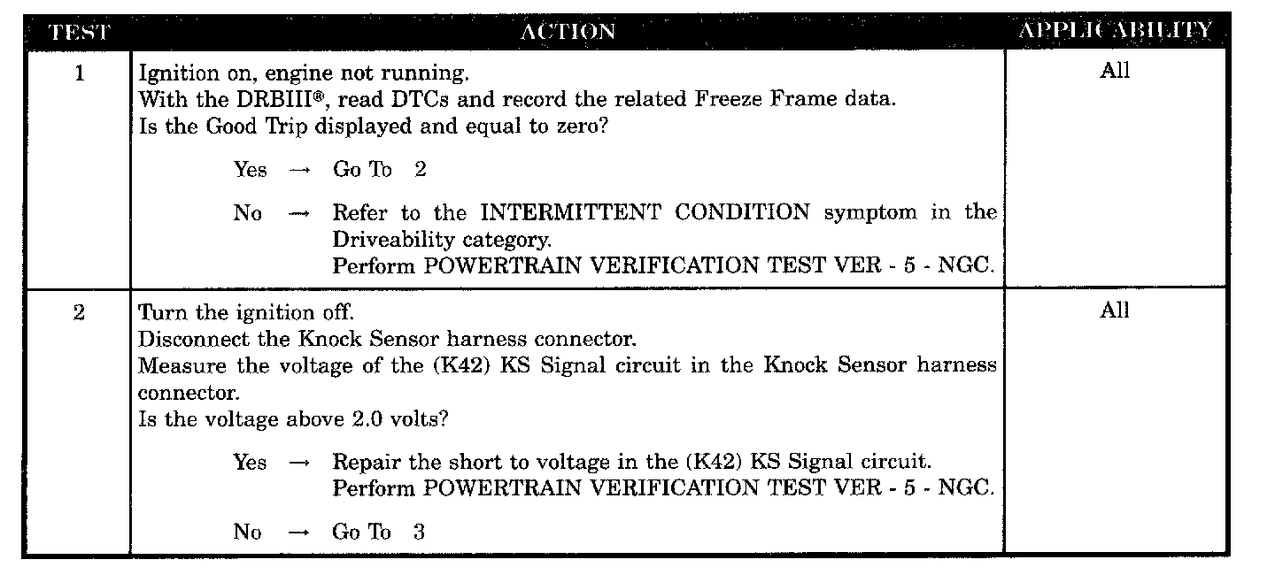 - (K42) KS signal circuit shorted to (K45) KS return circuit