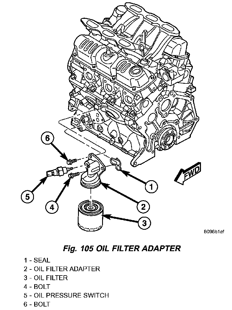 1. Using suitable oil filter wrench, turn filter counterclockwise to remove from oil filter adapter (Fig. 105). Properly discard used oil filter.