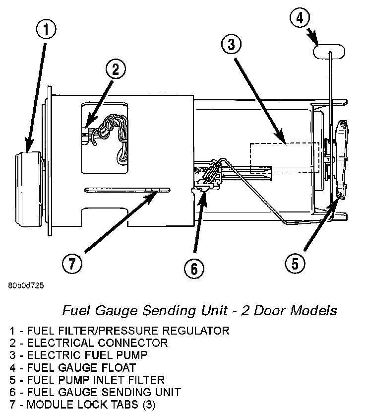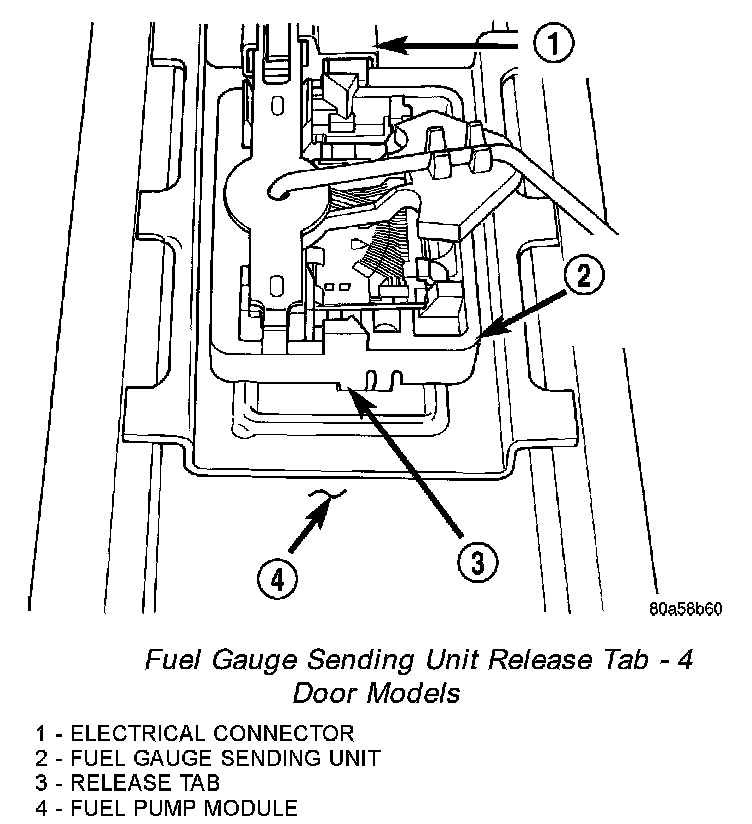 Fuel Gauge Sending Unit Release Tab - 4 Door Models: