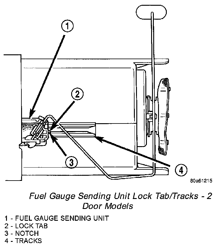 Fuel Gauge Sending Unit Lock Tab/Tracks - 2 Door Models: