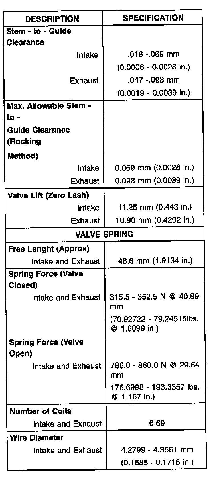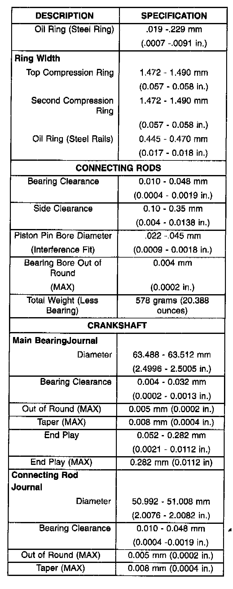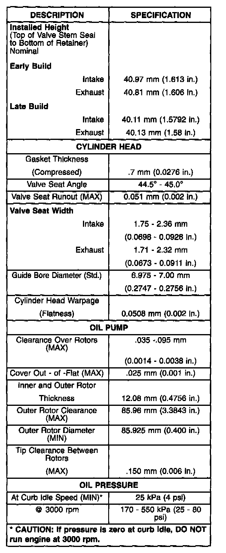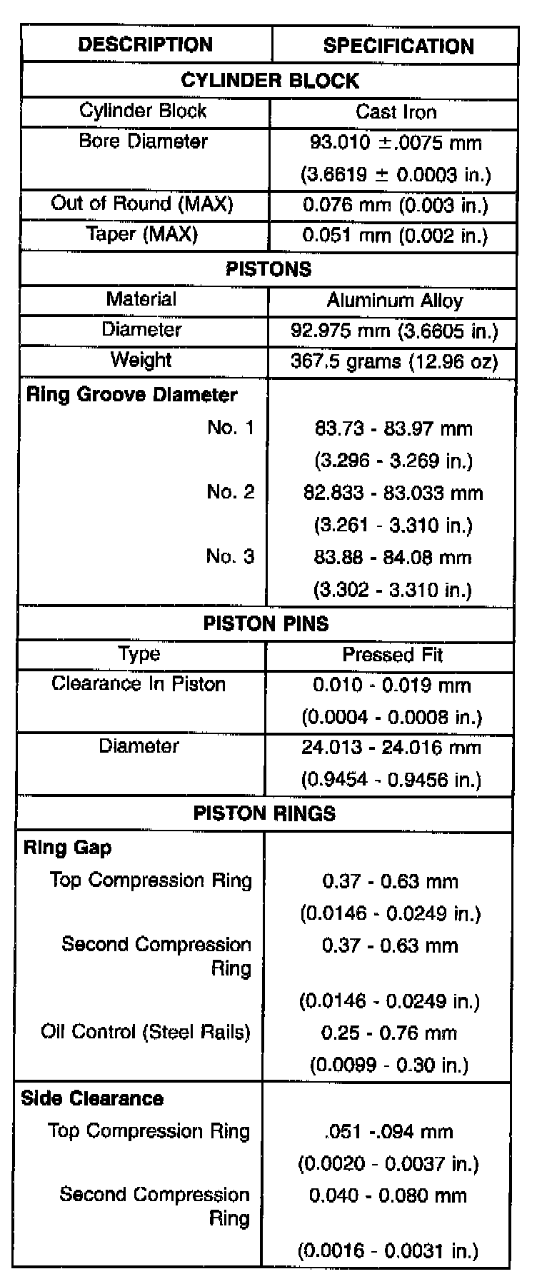 Complete Engine Specifications