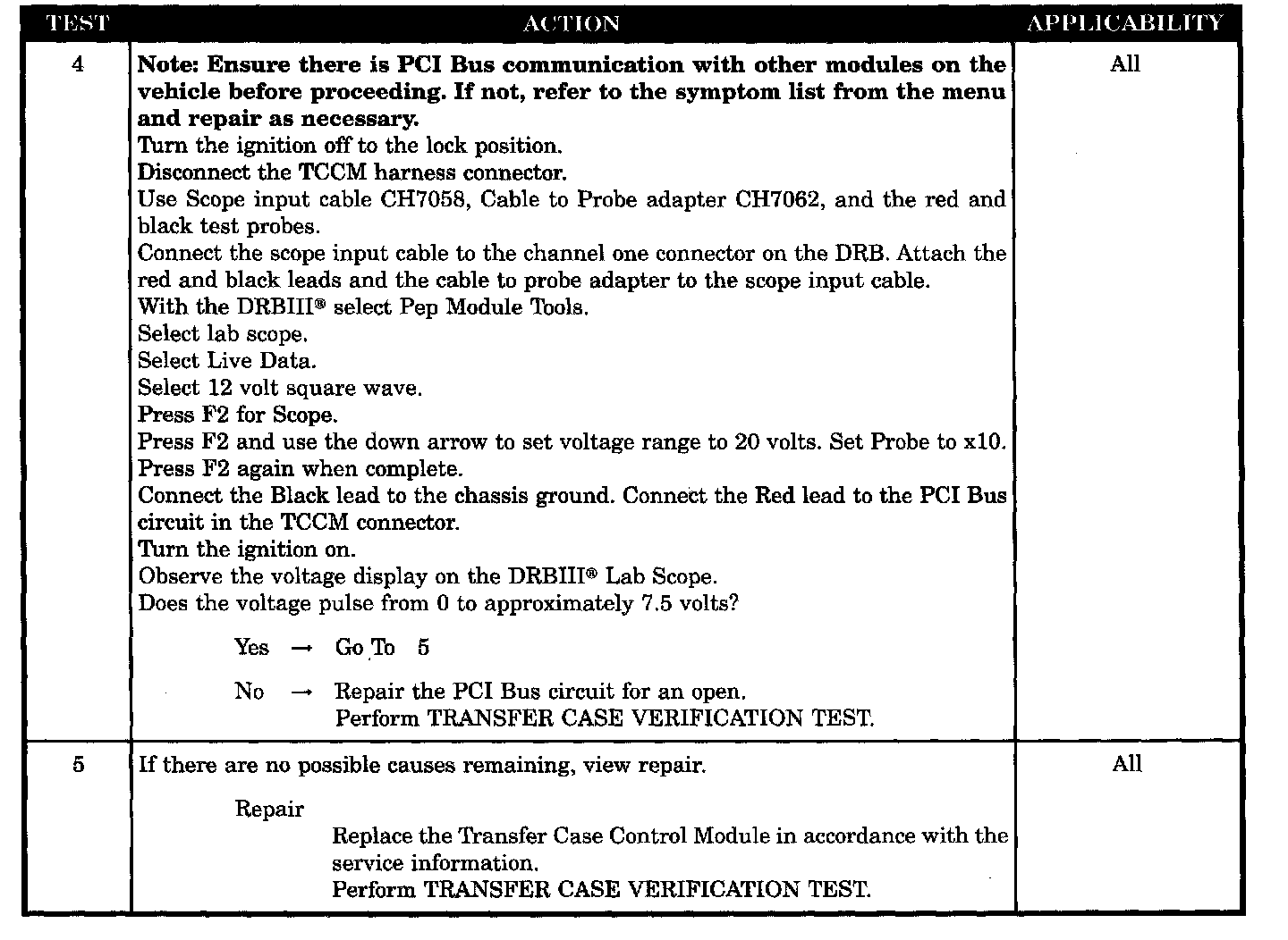 NO RESPONSE FROM TRANSFER CASE CONTROL MODULE