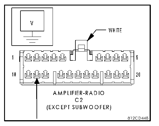 Measure for voltage on the (X298) Amplified Right I/P Speaker (-) circuit.