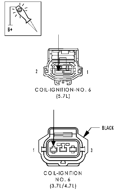 Using a 12-volt test light connected to a 12-volt source, probe the (K10) Coil Control No.6 circuit.