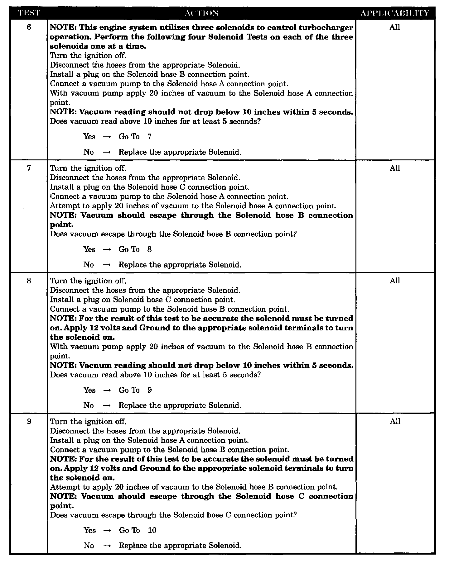 - Confirm all solenoid test