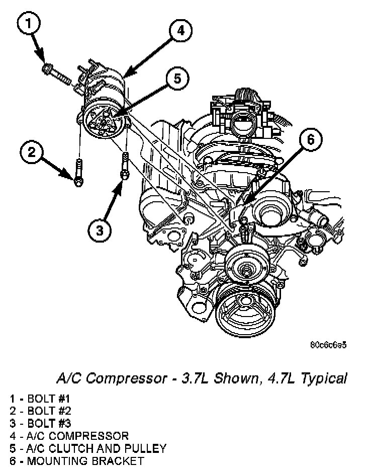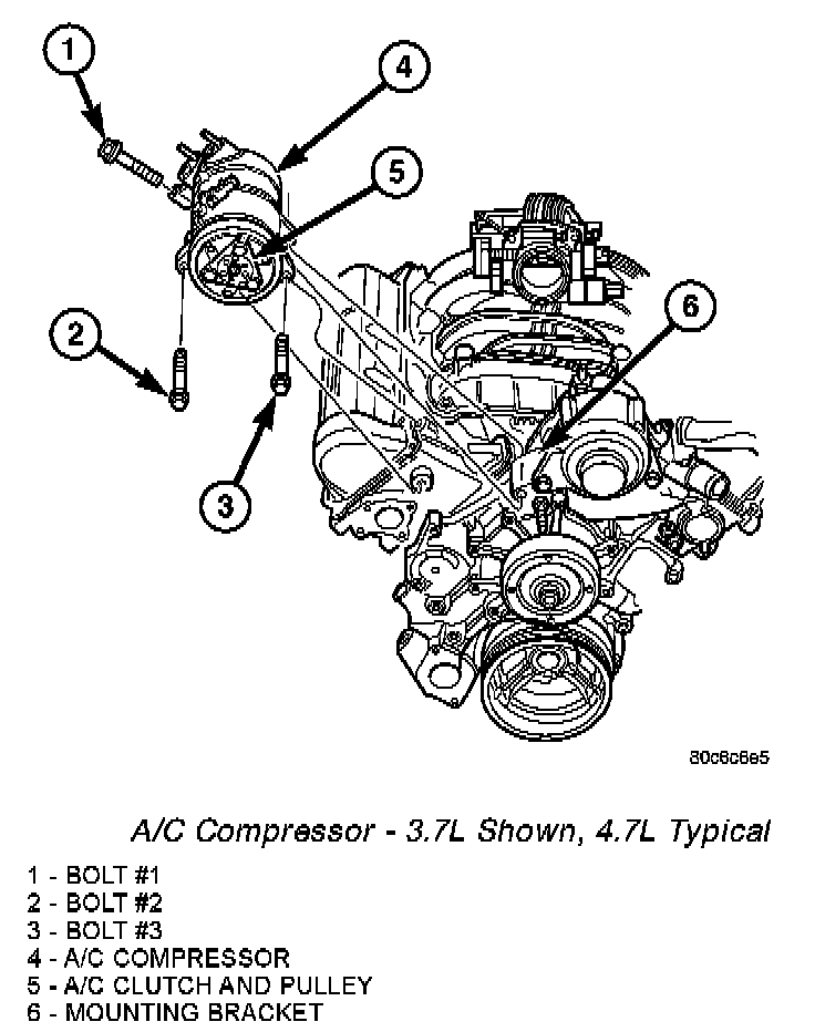 A/C Compressor - 3.7L Shown, 4.7L Typical: