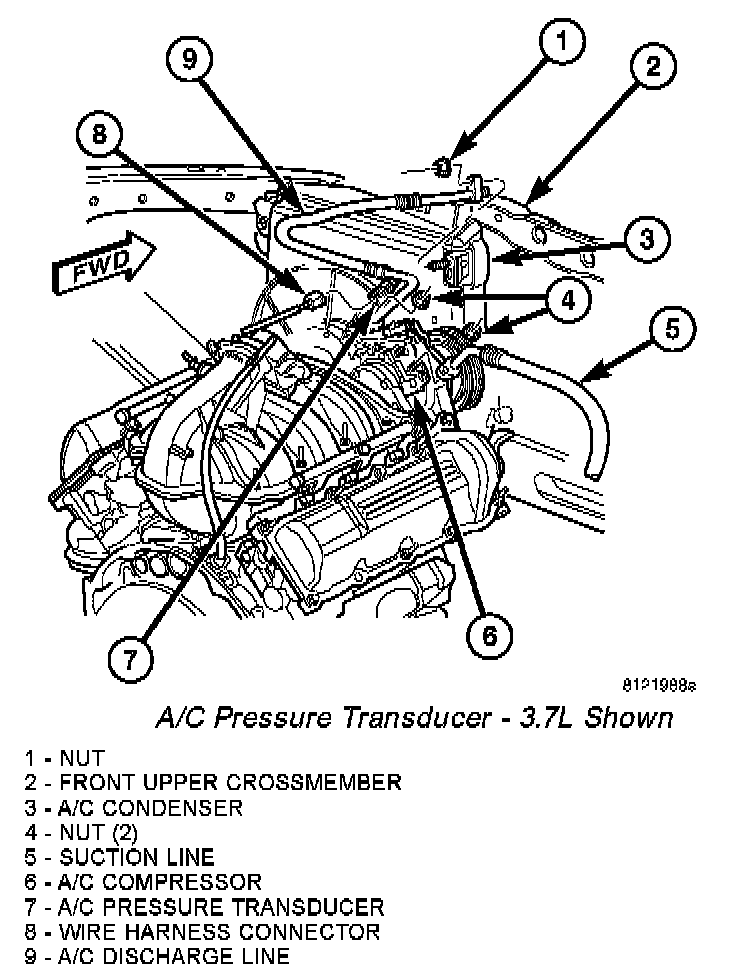A/C Pressure Transducer - 3.7L Shown: