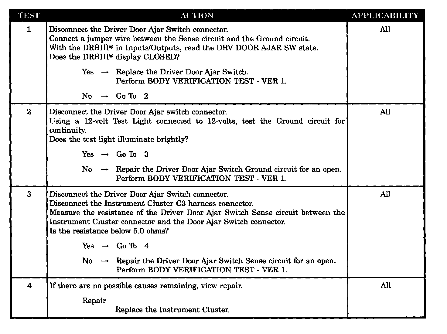 DRIVER DOOR AJAR CIRCUIT OPEN
