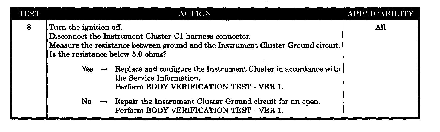 - Instrument cluster ground circuit open