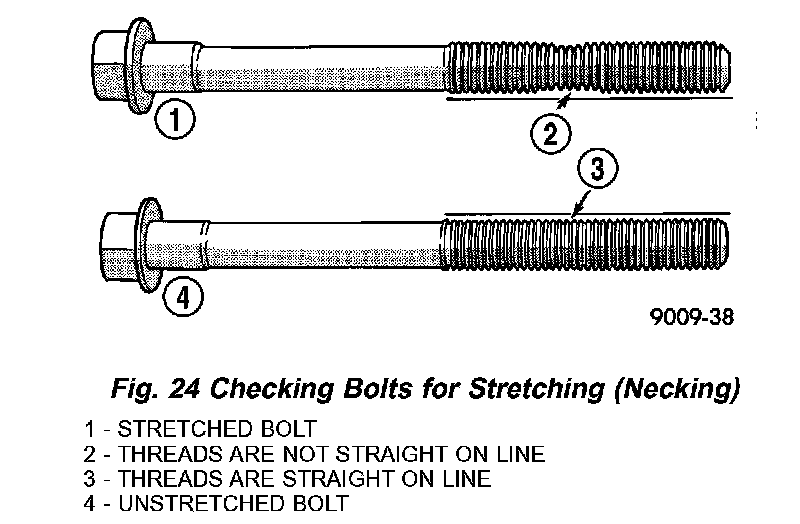 Should be examined BEFORE reuse. If the threads are necked down, the bolts should be replaced (Fig. 24).