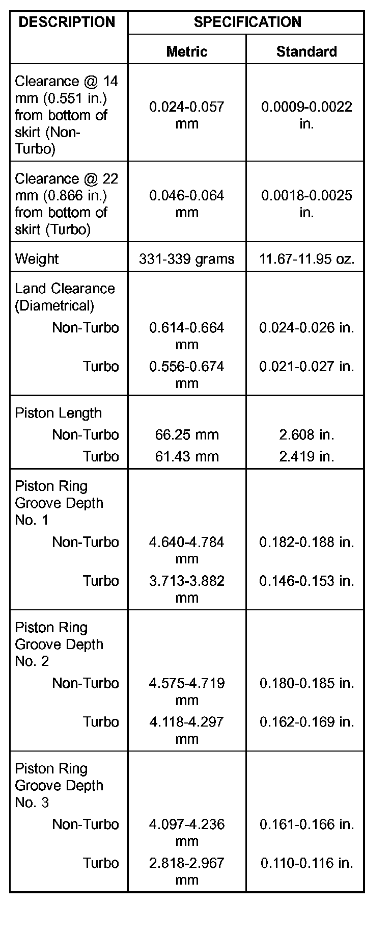 PISTONS DESCRIPTION SPECIFICATION