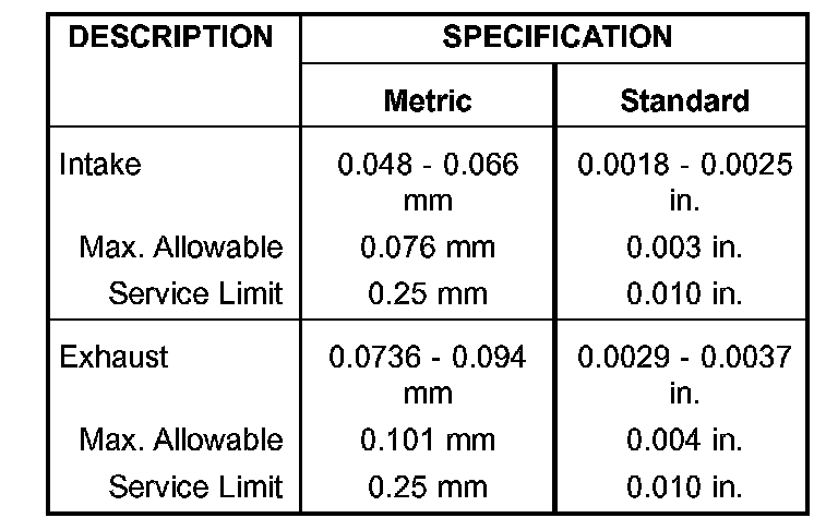 VALVE STEM TO GUIDE CLEARANCE
