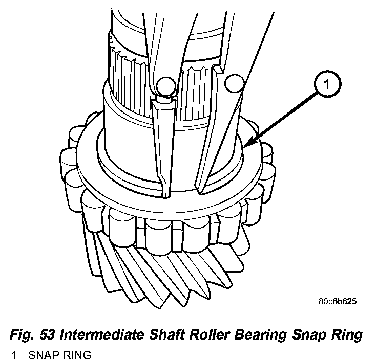 25. Remove intermediate shaft roller bearing snap ring (Fig. 53).