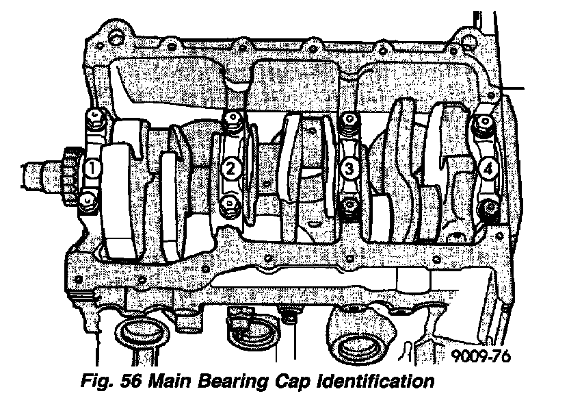 1. Tighten # 1, 3 and 4 main cap bolts to 41 Nm (30 ft. lbs.) + 1/4 Turn.