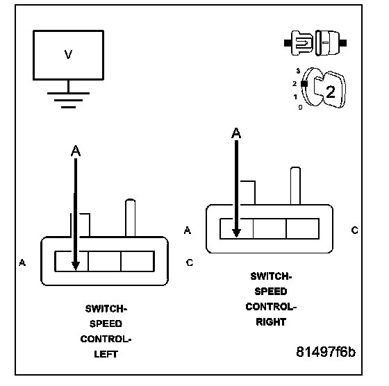 NOTE: The measurement must be taken from both Speed Control Switch harness connectors.