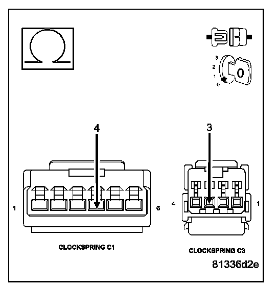 Measure the resistance of the (V937) Switch Return circuit between the C1 and C3 Clockspring harness connectors.