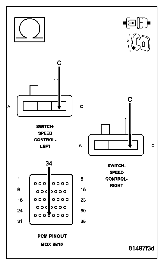 NO: Replace the Speed Control Switch that had the incorrect resistance value. Perform the POWERTRAIN VERIFICATION TEST. Powertrain Verification Test