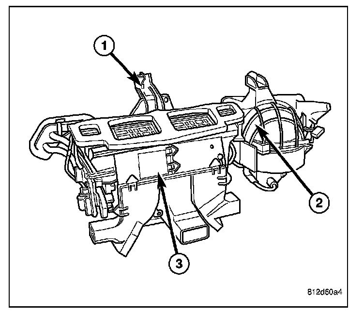 2. Remove the air distribution housing (3) from the HVAC housing (1).