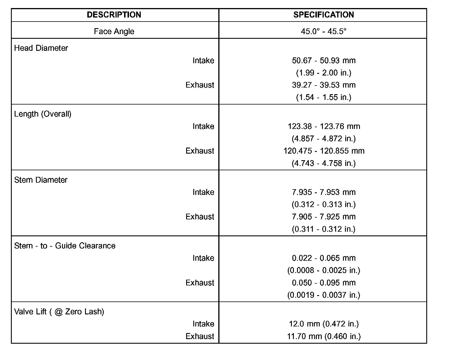 VALVE TIMING