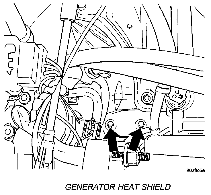 2. Remove the 2 bolts from the top of the heat shield on the generator.