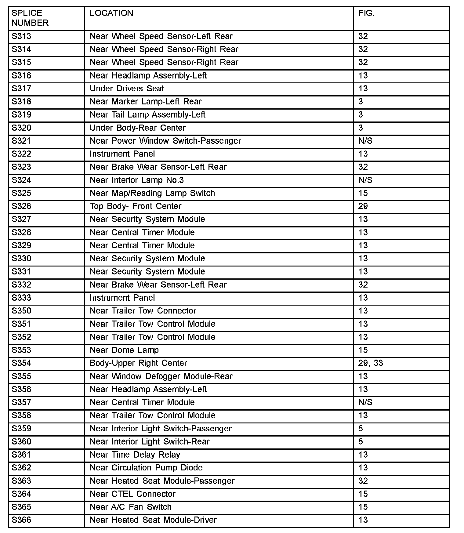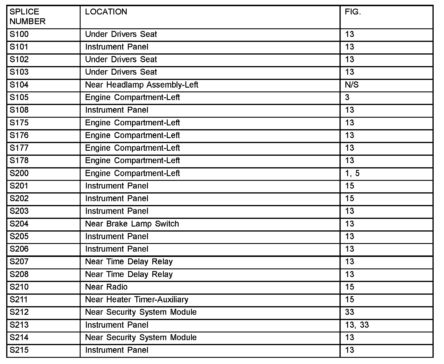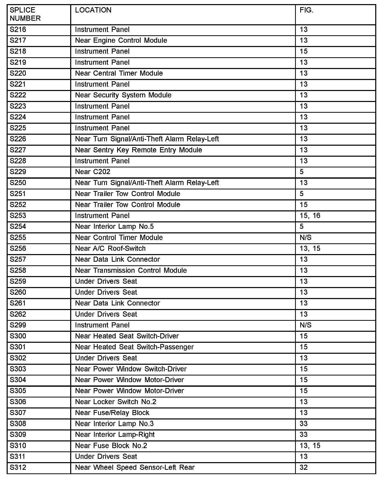 The abbreviation N/S means Not Shown in the illustrations.