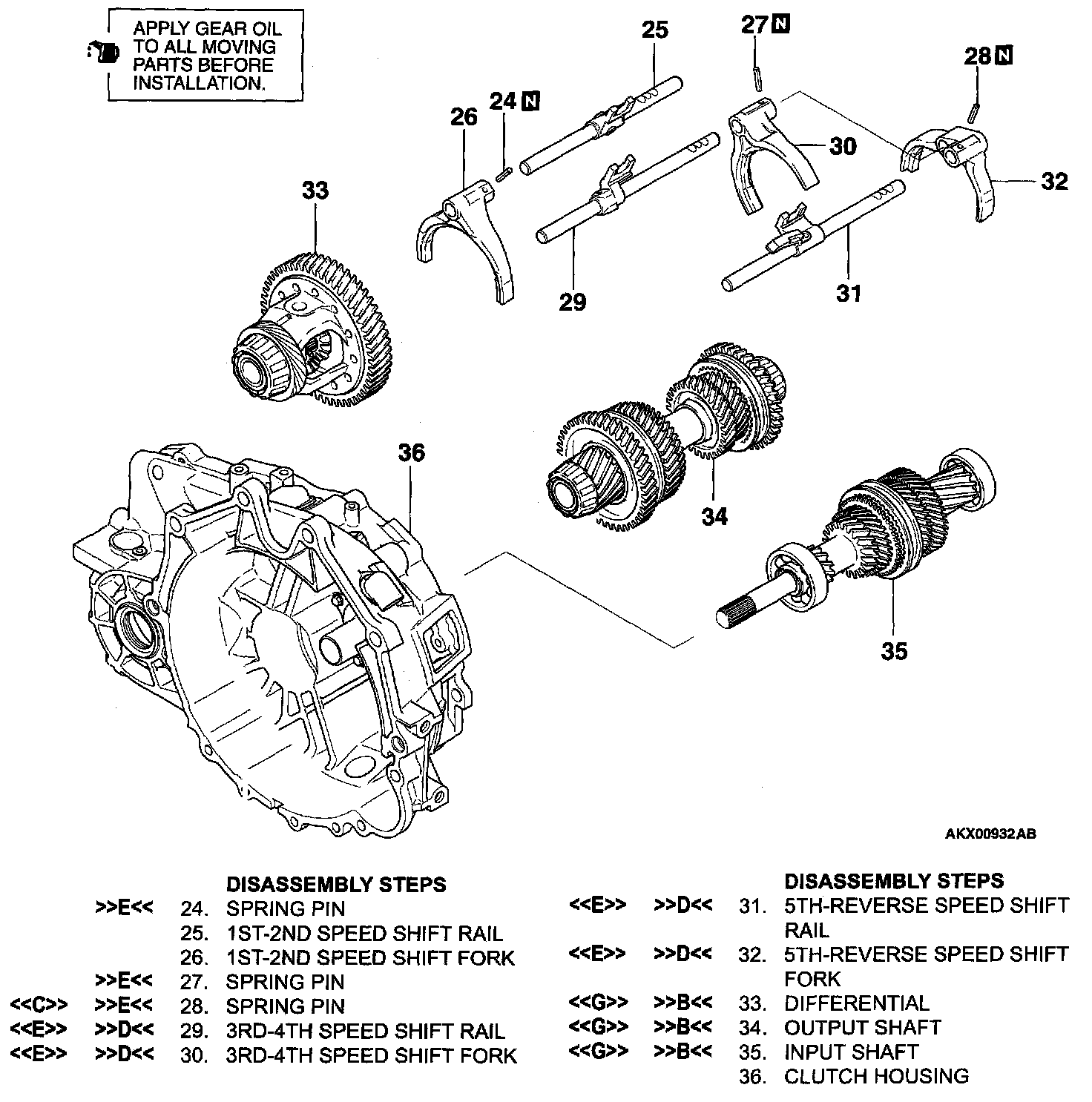 >>D<< 5TH-REVERSE SPEED SHIFT FORK/5TH-REVERSE SPEED SHIFT RAIL/3RD-4TH SPEED SHIFT FORK/3RD-4TH SPEED SHIFT RAIL INSTALLATION