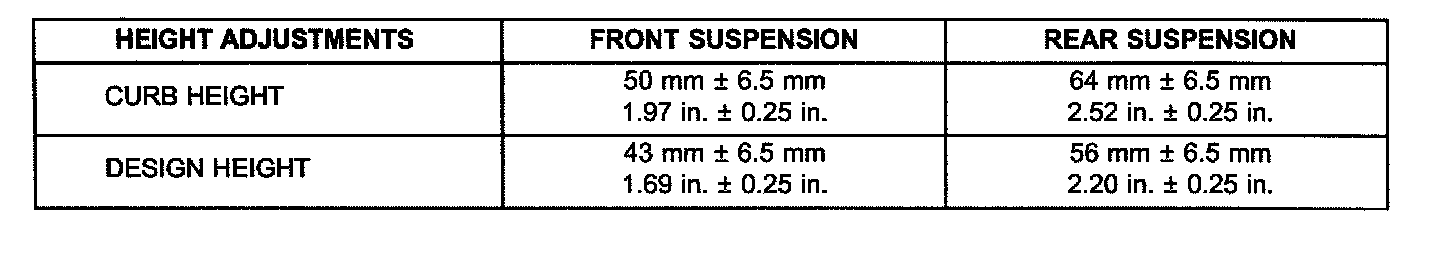 NOTE: All wheel alignments are to be set with the vehicle at DESIGN HEIGHT.